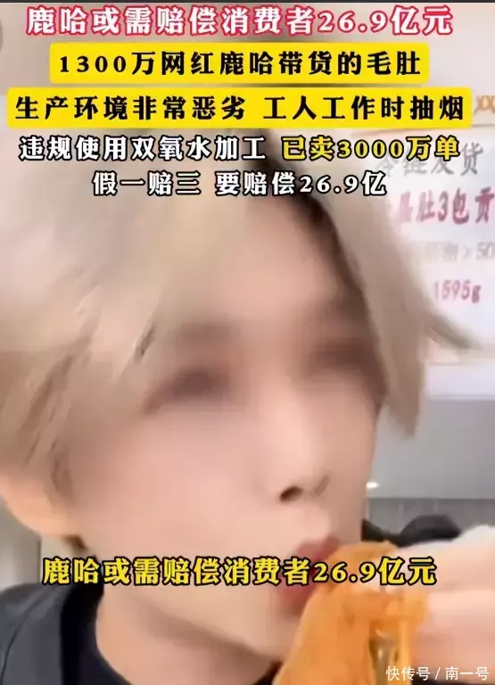 靠模仿鹿晗走红的鹿哈,也就是如今改回本名的凌达乐,因直播间售卖的毛肚曝出质量和卫生双重问题被立案调查,退一赔三的赔付金额一算,直接冲到�亿的天价。